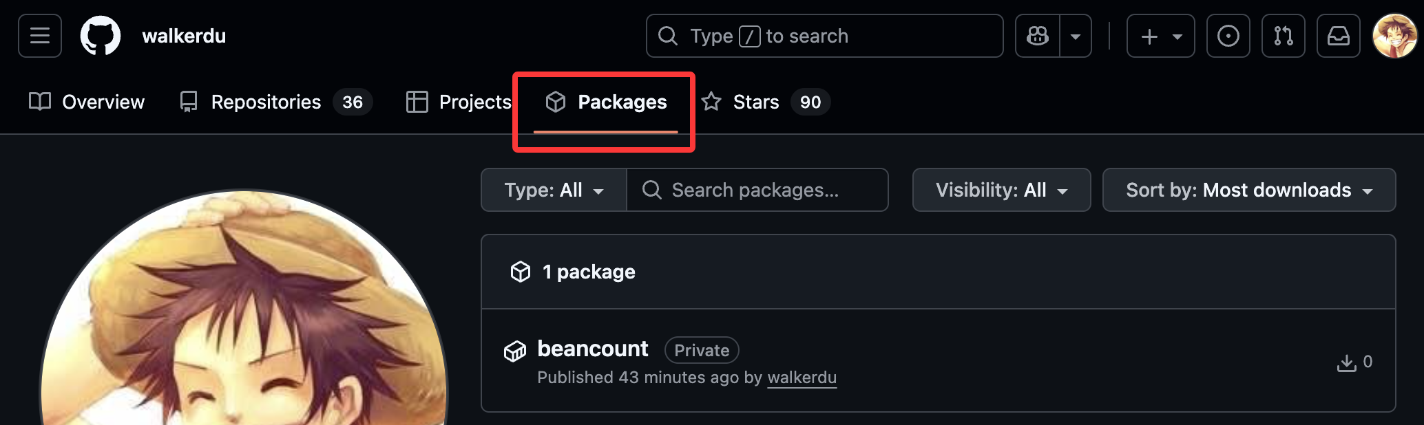 GitHub Package的管理页面在主页的Packages页签,例如我的:https://github.com/walkerdu?tab=packages