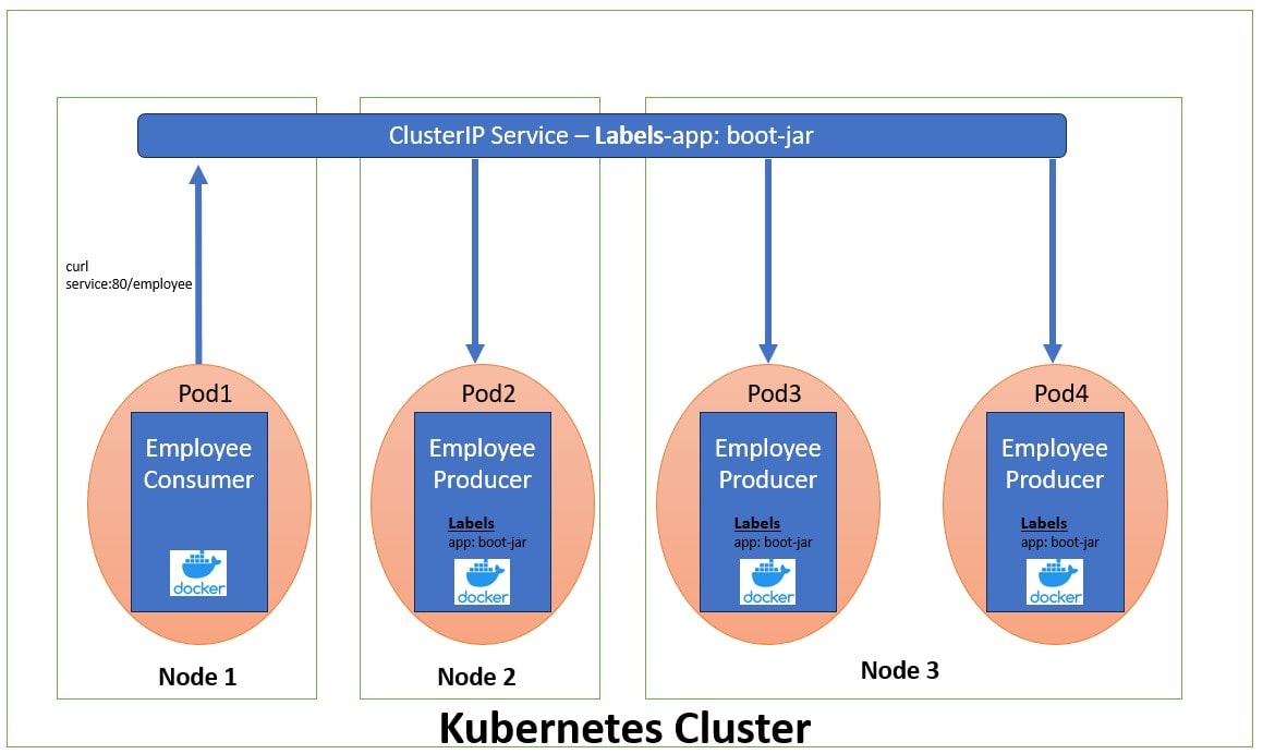 - Service:一个公司前台电话/前台接待,当有人想找”财务部门”时,前台会帮你转接到可用的财务人员(负载均衡),即使财务人员换了办公室,前台依然知道怎么找到他们